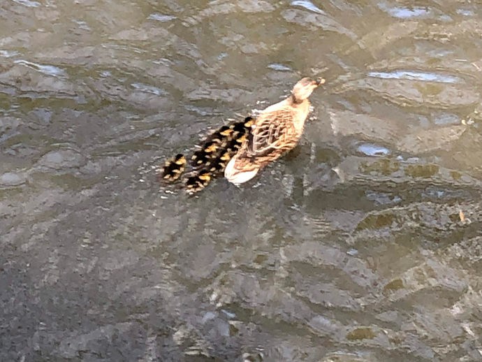 On my walk at Vitruvian Park, several people stop and stare at a proud mother duck with six tiny baby ducklings trailing alongside her....