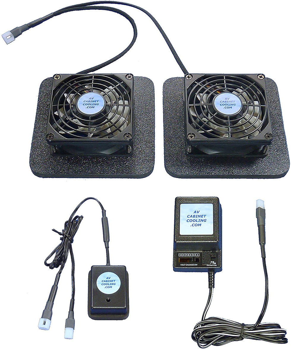Audio power amplifier fan helps to draw heat away from the electrical components.