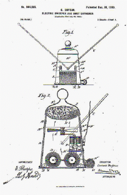 The end of the 19th century saw the introduction of powered cleaners, although early types used some variation of blowing air to clean instead of suction. One appeared in 1898 when John S. Thurman of St. Louis, Missouri submitted a patent for a "pneumatic carpet renovator" which blew dust into a receptacle. Thurman's system, powered by an internal combustion engine, traveled to the customer’s residence on a horse-drawn wagon as part of a door to door cleaning service. Corrine Dufour of Savannah, Georgia received two patents in 1899 and 1900 for another blown air system that seems to have featured the first use of an electric motor.