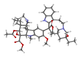 Vinblastine and vincristine — chemotherapy medications used to treat several types of cancers — are found in the plant and are biosynthesised from the coupling of the alkaloids catharanthine and vindoline. The newer semi-synthetic chemotherapeutic agent vinorelbine — used in the treatment of non-small-cell lung cancer — can be prepared either from vindoline and catharanthine or from the vinca alkaloid leurosine, in both cases via anhydrovinblastine. The insulin-stimulating vincoline has been isolated from the plant.